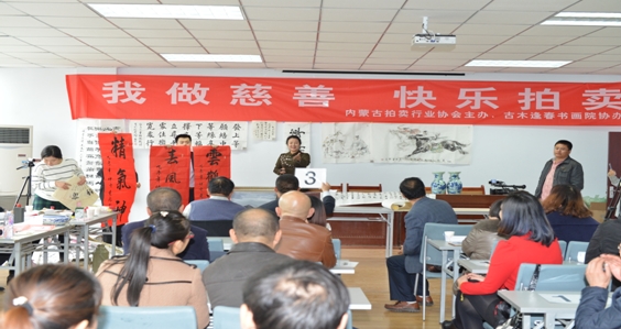 | [我做慈善,快樂(lè)拍賣(mài)] 2015年全國(guó)拍賣(mài)咨詢(xún)服務(wù)周 內(nèi)蒙古呼和浩特站活動(dòng)集錦 中國(guó)拍賣(mài)行業(yè)協(xié)會(huì)每年組織全行業(yè)在全國(guó)范圍內(nèi)組織開(kāi)展“全國(guó)拍賣(mài)咨詢(xún)服務(wù)周”活動(dòng),旨在進(jìn)一步宣傳貫徹《中華人民共和國(guó)拍賣(mài)法》,普及拍賣(mài)知識(shí),擴(kuò)大拍賣(mài)的社會(huì)影響力,樹(shù)立拍賣(mài)行業(yè)的良好形象,增進(jìn)社會(huì)公眾對(duì)拍賣(mài)行業(yè)的了解。 中拍協(xié)在今年的重慶宣傳工作會(huì)議部署,2015年的全國(guó)“拍賣(mài)咨詢(xún)服務(wù)周”活動(dòng)的主題是“快樂(lè)拍賣(mài)”。我們內(nèi)蒙古拍賣(mài)行業(yè)協(xié)會(huì)按照中國(guó)拍賣(mài)行業(yè)協(xié)會(huì)的布置和要求,確定活動(dòng)的主題是“我做慈善,快樂(lè)拍賣(mài)”。 2015年11月6日,內(nèi)蒙古拍賣(mài)行業(yè)協(xié)會(huì)以“我做慈善,快樂(lè)拍賣(mài)”為主題的公益慈善拍賣(mài)活動(dòng)在內(nèi)蒙古自治區(qū)首府呼和浩特市舉行,本次活動(dòng)由內(nèi)蒙古拍賣(mài)行業(yè)協(xié)會(huì)主辦,內(nèi)蒙古古木逢春書(shū)畫(huà)院協(xié)辦。內(nèi)蒙古拍賣(mài)行業(yè)協(xié)會(huì)會(huì)長(zhǎng)李繼生、副會(huì)長(zhǎng)兼秘書(shū)長(zhǎng)賈世軍及全區(qū)部分拍賣(mài)企業(yè)負(fù)責(zé)人及部分拍賣(mài)師親臨現(xiàn)場(chǎng)參加本次活動(dòng)。