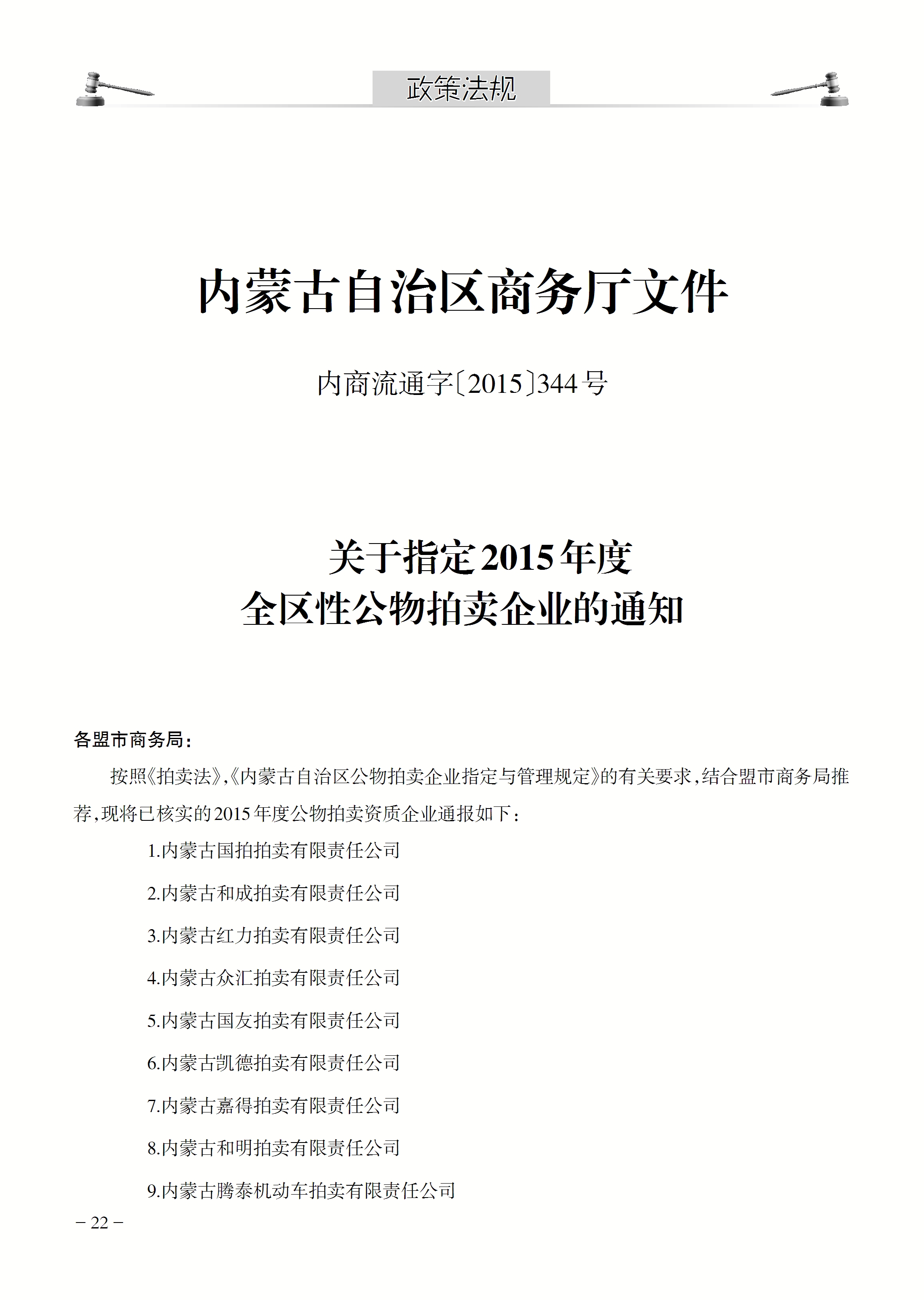 【內(nèi)蒙古拍賣(mài)2015年第2期(總第61期)】
