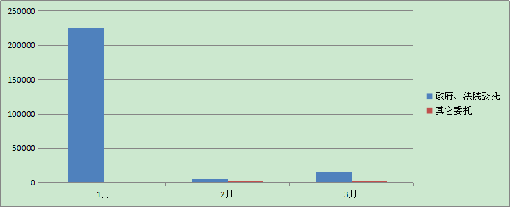 1月和3月政府、法院委托成交額仍然是主要來源,2月份其他社會(huì)委托出現(xiàn)增長(zhǎng)。