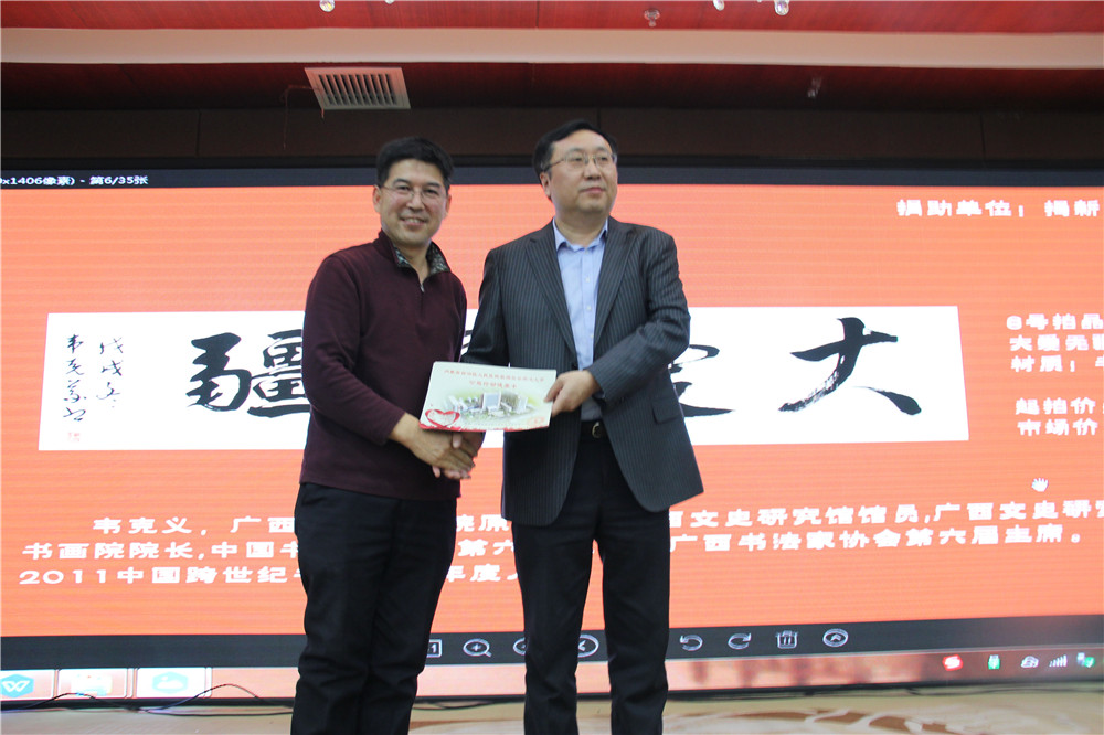 內(nèi)蒙古拍賣行業(yè)協(xié)會王志江會長與與拍賣師于闖及 捐贈愛心人士  內(nèi)蒙古拍賣行業(yè)協(xié)會娜晴秘書長與拍賣師于闖