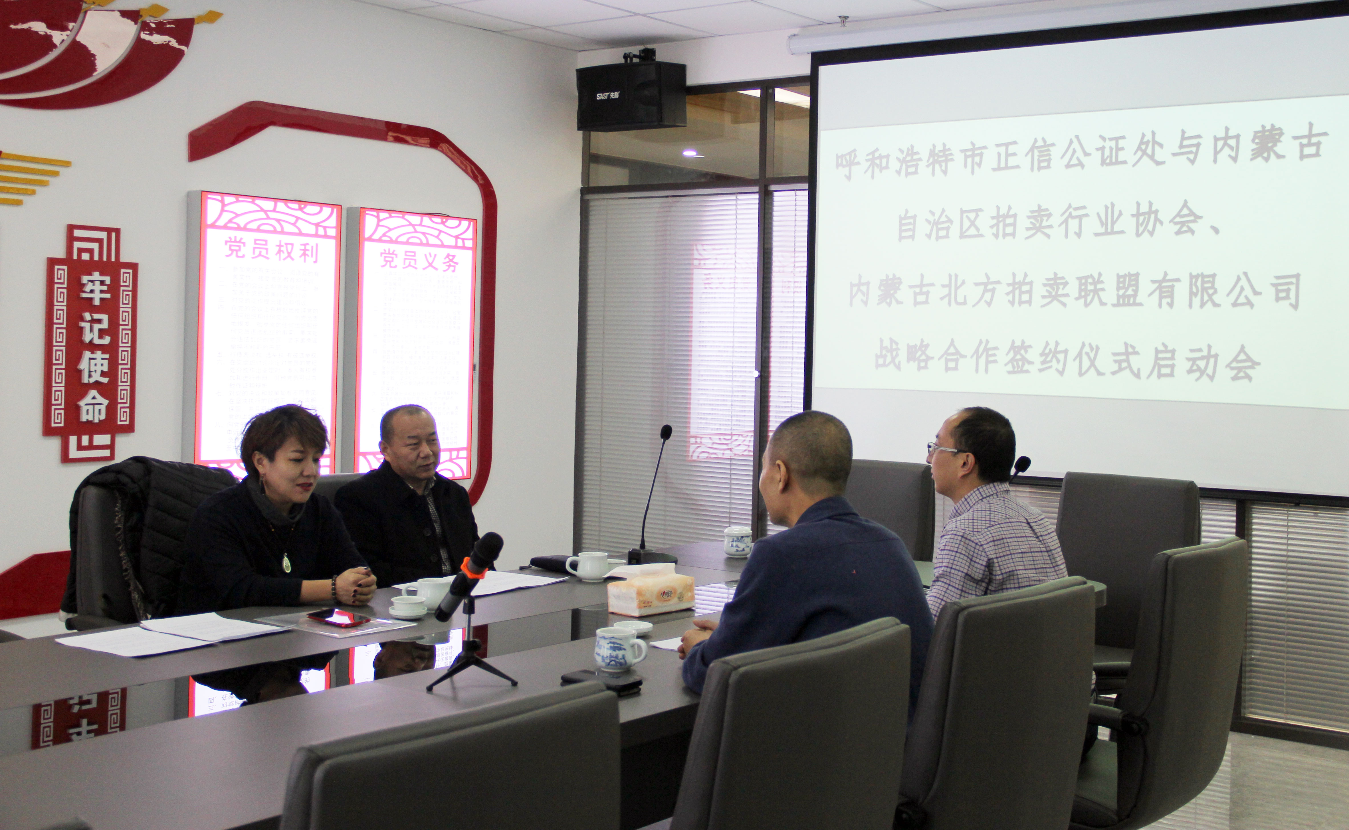 內(nèi)蒙古拍賣行業(yè)協(xié)會(huì)領(lǐng)導(dǎo)與正信公證處領(lǐng)導(dǎo)洽談  雙方簽署戰(zhàn)略合作協(xié)議