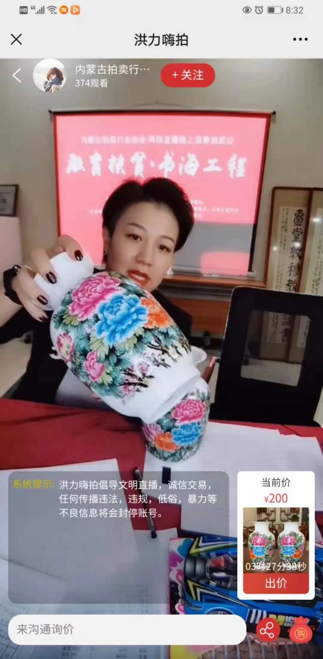 用書(shū)籍點(diǎn)亮孩子們的世界,讓夢(mèng)想自由飛翔 ——記內(nèi)蒙古拍賣(mài)行業(yè)協(xié)會(huì)年會(huì)暨線上直播慈善拍賣(mài)會(huì) 一年一度的內(nèi)蒙古拍賣(mài)行業(yè)協(xié)會(huì)慈善拍賣(mài)會(huì)如約而至。在這樣一個(gè)特殊時(shí)期,國(guó)外疫情失控,國(guó)內(nèi)疫情多地零星散發(fā)的情況下,我們依然堅(jiān)守拍賣(mài)陣地,采取了線上直播的形式、通過(guò)洪力嗨拍小程序面向全國(guó)各地的公眾,向社會(huì)傳遞更多的愛(ài)心力量。 此次線上慈善拍賣(mài)會(huì)由內(nèi)蒙古拍賣(mài)行業(yè)協(xié)會(huì)秘書(shū)長(zhǎng)、國(guó)家注冊(cè)拍賣(mài)師培訓(xùn)教官、國(guó)家注冊(cè)拍賣(mài)師娜晴女士和國(guó)家注冊(cè)拍賣(mài)師宋冠楠全程主播,所籌善款全部捐贈(zèng)給中國(guó)光華科技基金會(huì)--書(shū)海工程項(xiàng)目為貧困地區(qū)兒童捐贈(zèng)圖書(shū)。 直播現(xiàn)場(chǎng)非常熱烈,內(nèi)拍協(xié)在第一次嘗試線上慈善拍賣(mài)的情況下,直播間人數(shù)達(dá)到500多人,大家在線上直播間互動(dòng)交流,都想為這些需要圖書(shū)的孩子們奉獻(xiàn)自己的一份力量。 拍品有價(jià),愛(ài)心無(wú)價(jià),在此特別鳴謝為本次慈善拍賣(mài)捐贈(zèng)拍品的各位愛(ài)心企業(yè)和個(gè)人。(公司排名不分先后) 洪力網(wǎng)科技有限公司董事長(zhǎng)畢研挺先生 內(nèi)蒙古京平商貿(mào)有限責(zé)任公司 內(nèi)蒙古中宣拍賣(mài)有限責(zé)任公司 內(nèi)蒙古及時(shí)雨拍賣(mài)有限公司 內(nèi)蒙古凱德拍賣(mài)有限責(zé)任公司 內(nèi)蒙古嘉保拍賣(mài)有限責(zé)任公司 鄂爾多斯市聯(lián)興拍賣(mài)有限責(zé)任公司 內(nèi)蒙古三合拍賣(mài)有限責(zé)任公司 滿洲里公物拍賣(mài)有限責(zé)任公司 滿洲里福匯拍賣(mài)有限責(zé)任公司 內(nèi)蒙古嘉恒拍賣(mài)有限責(zé)任公司