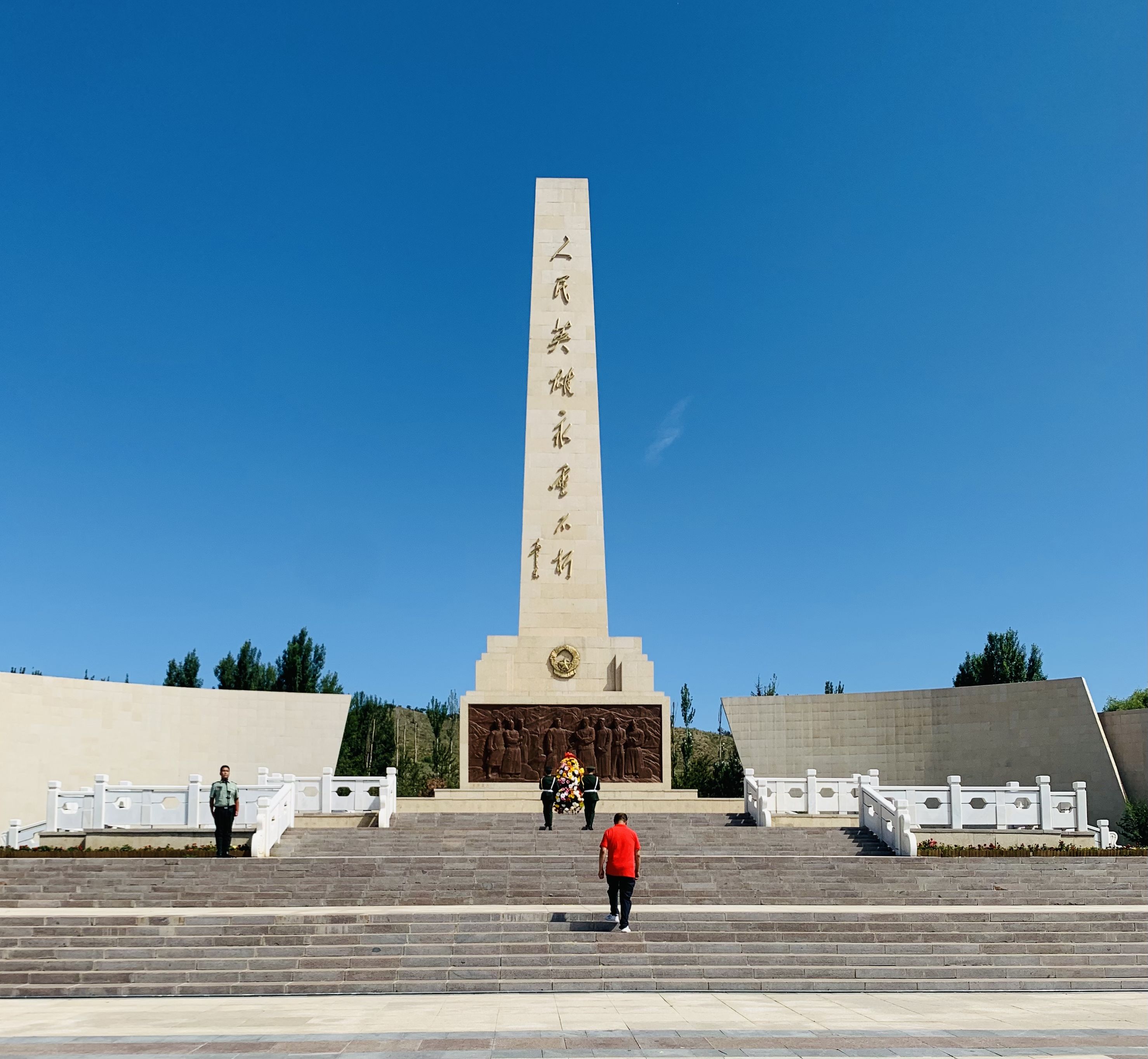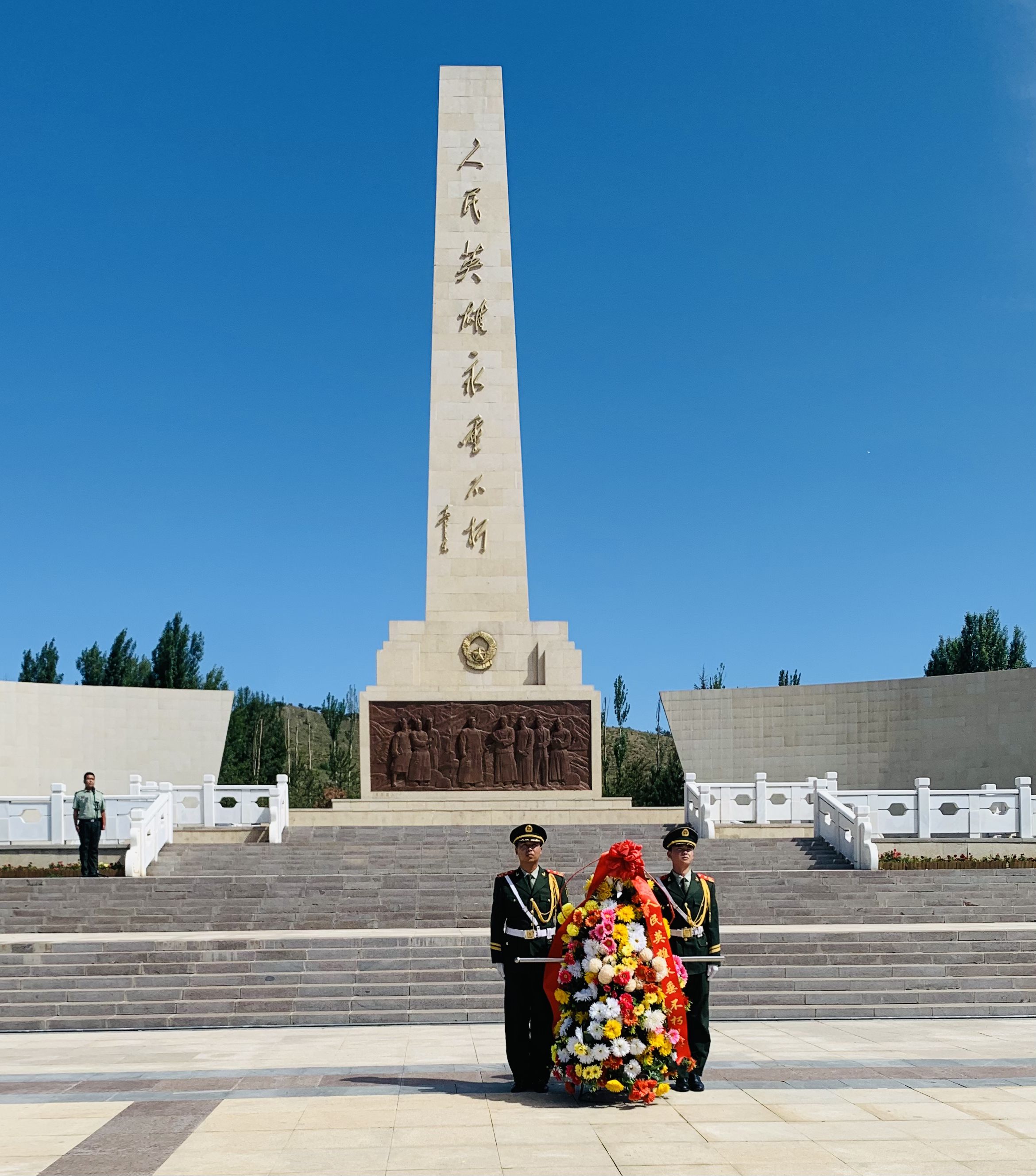 向人民英雄紀(jì)念碑行注目禮、唱國歌 首先舉行的悼念儀式上,大家沉重悼念了在抗日戰(zhàn)爭時(shí)期、解放戰(zhàn)爭時(shí)期為我區(qū)獻(xiàn)出寶貴生命的先烈們,向?yàn)樘剿骶葒让竦牡缆?、抵御侵略而犧牲的仁人志士致敬!隨后參觀了大青山紅色文化公園紀(jì)念展廳,接受無數(shù)先烈們的精神洗禮,人民不會忘記,共和國不會忘記,我們不會忘記,先烈不朽。