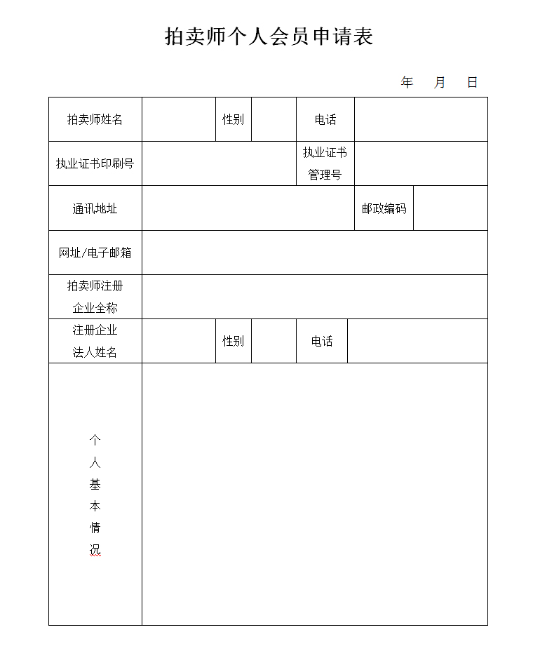 附件下載:拍賣師個人會員申請表 /UploadFile/20160719160734359.doc