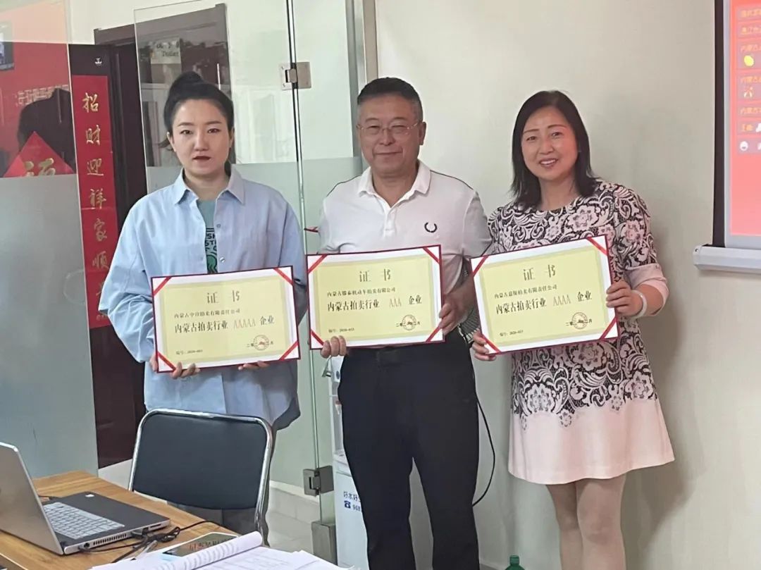 頒發(fā)內(nèi)蒙古拍賣企業(yè)信用等級(jí)評(píng)級(jí)證書